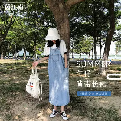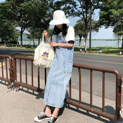 2020 Autumn New Korean version of long denim dress pocket skirt over knee hugging baby bag skirt hipster cute tide