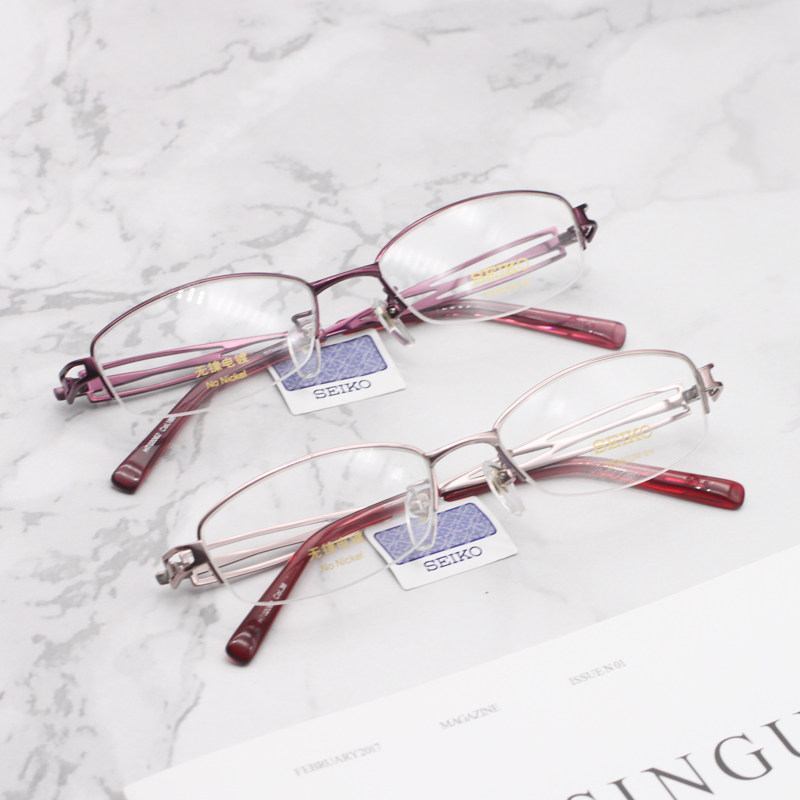SEIKO SEIKO half frame pure titanium ultra-light eyeglass frame fashion female myopia with glasses optical eyeglass frame HT02062