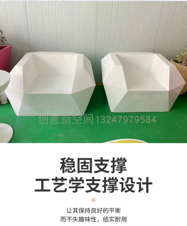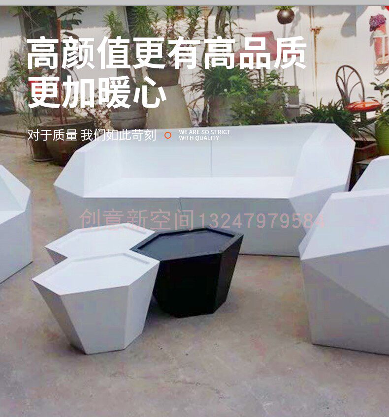 Glass Fiber Rhomboid Sofa Chair Combined Coffee Hall Negotiation Table And Chairs Mall Rest Area Bench Hotel Reception Chair