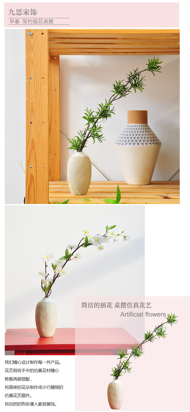 Early Spring New Chinese Simplicity Emulation plant flower arrangement Flower Art Ceramic Bottle Suit art270