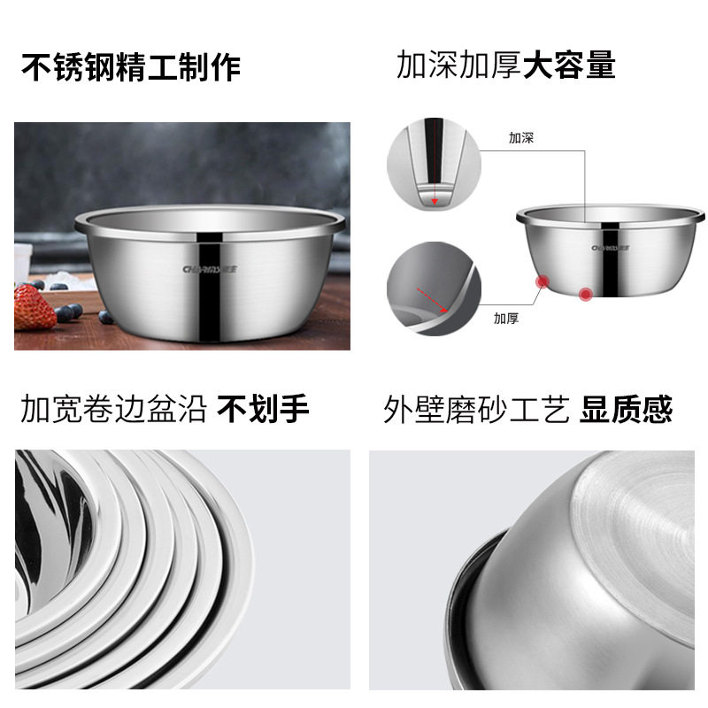 Creatives stainless steel five pieces of broth seasoning basin thickened deepen round soup bowl baking wide side seasoning cylinder