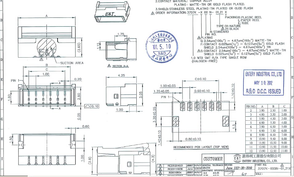 3707K-S06N-21L connector 1 0 pitch 6P with buckle light strip backlight socket no-print version-Taobao