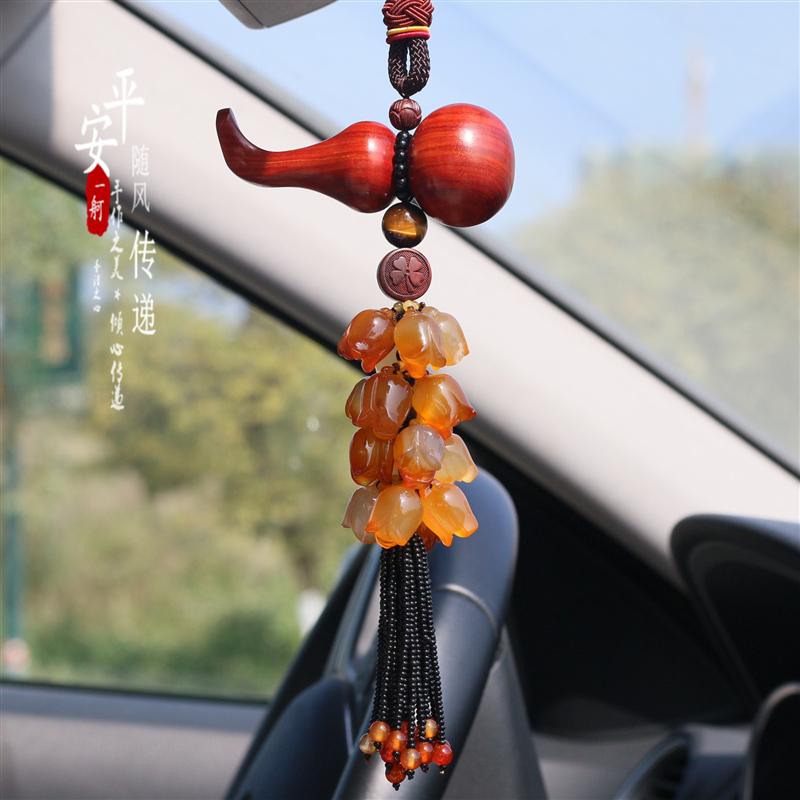 Chalcedony car pendant high-end car interior rear mirror agate jade pendant security male gift big gourd