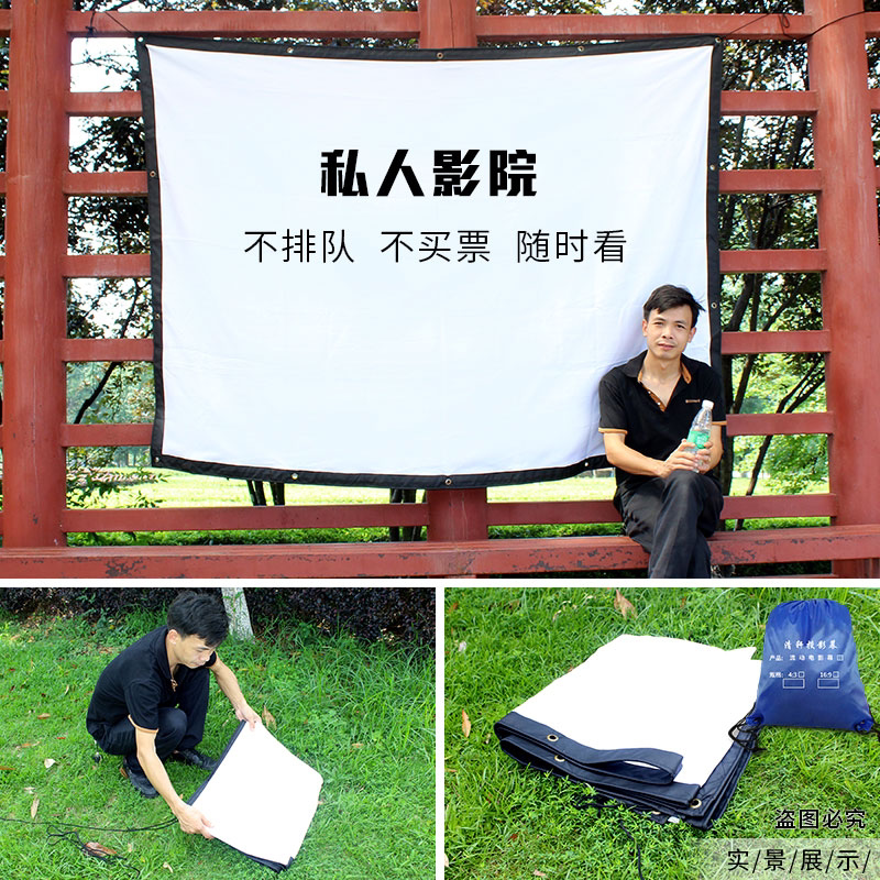 Mobile outdoor film screen cloth 100 to 300 inch old style projection screen easily folded white soft HD custom