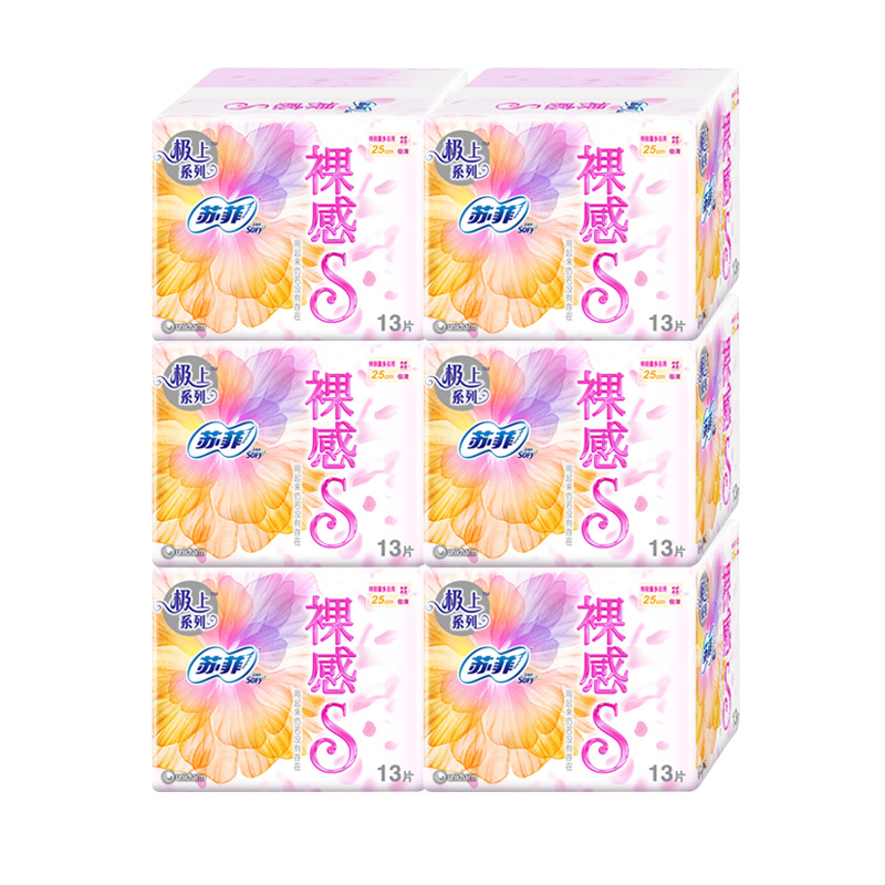Sufi sanitary cotton nude sensation S noble cotton quantity multidaily ultra thin sanitary cotton 13 pieces 6 packs 78 pieces 25cm Aunt 25cm