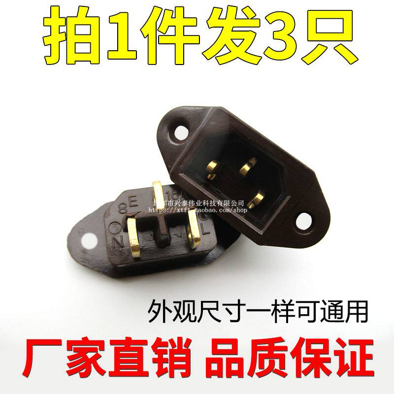 16A High power electronic pressure cooker power socket built-in thread character triple hole 3 copper foot plug electric cooker accessories