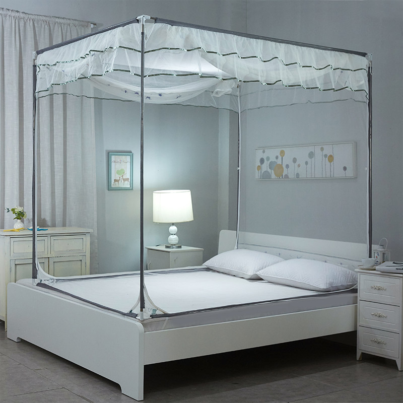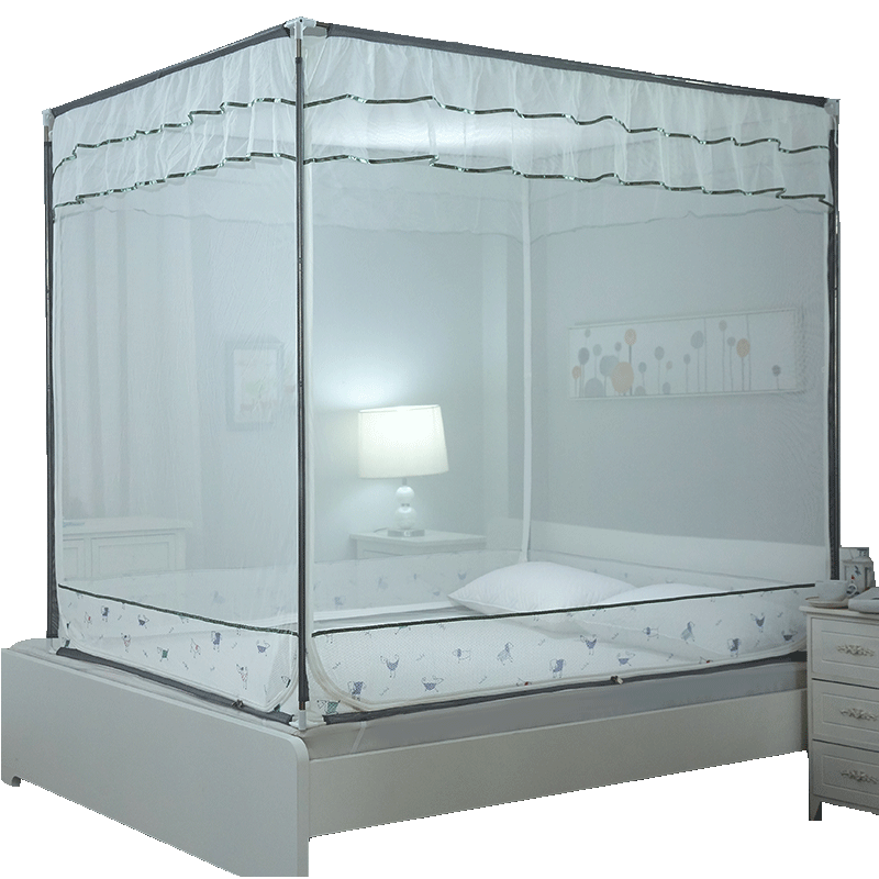 Jiao Meng sitting bed mosquito net Three-door zipper square roof single double household 1 5m 1 8m bed Wrought iron paint bracket