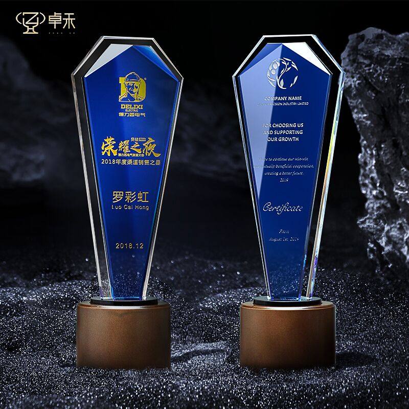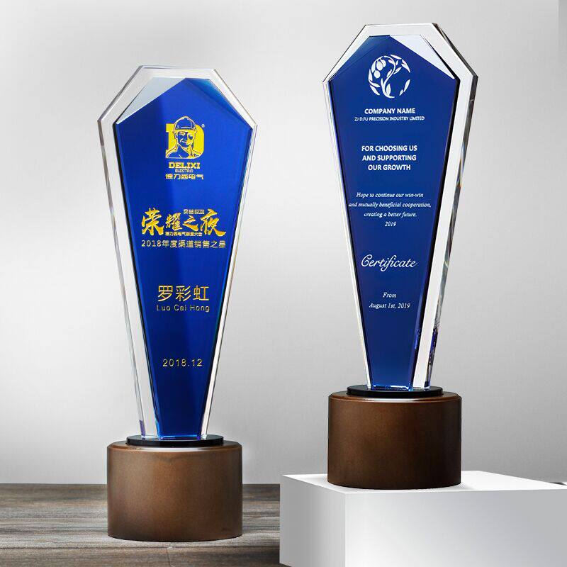Annual Qing Crystal Trophy Custom Loving Volunteer Excellent Employee Sales Champion Team Set To Make Honorary Medal