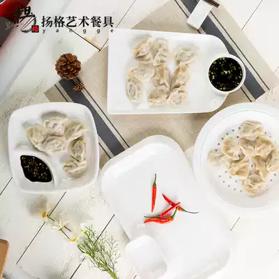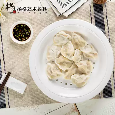 Yangge drain double-layer plate creative round grid with vinegar plate dumpling plate grid plate Hotel household plate
