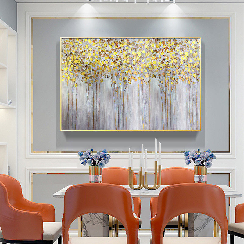 Fortune tree entrance decorative painting gold leaf hand-painted oil painting Corridor corridor vertical version of the home golden tree light luxury wall painting