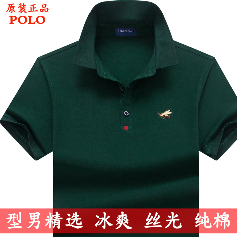 Summer big-name polo shirt cool feeling mercerized cotton lapel short-sleeved men's T-shirt loose large size half-sleeve cotton T-shirt