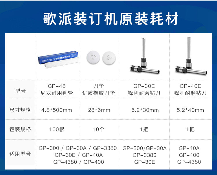 Gepai financial voucher binding machine consumables riveting pipe drill knife knife pad hose applicable manual binding machine GP30030A30E3380438040A400 cover voucher wrapping corner