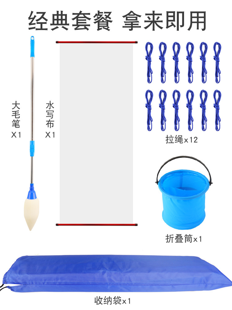 Whole set (pen clog 12 rope cashier bag) Shenpen * 1 water write cloth * 1 water write folding bucket * 1 rope 1 root * 1 cashier bag * 1 ink 1 bottle * 1