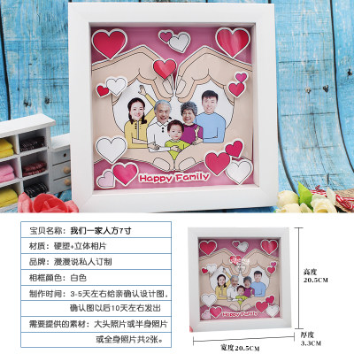 Customized creative stereo cartoon diy wooden photo frame for a family of three-member family holiday gift