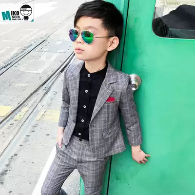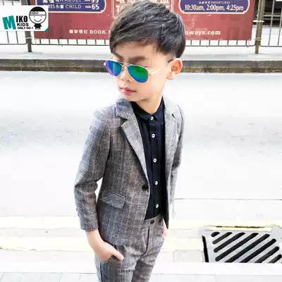 Spring and autumn Korean children's suit suit Plaid boy small suit two-piece set 2020 new flower girl dress