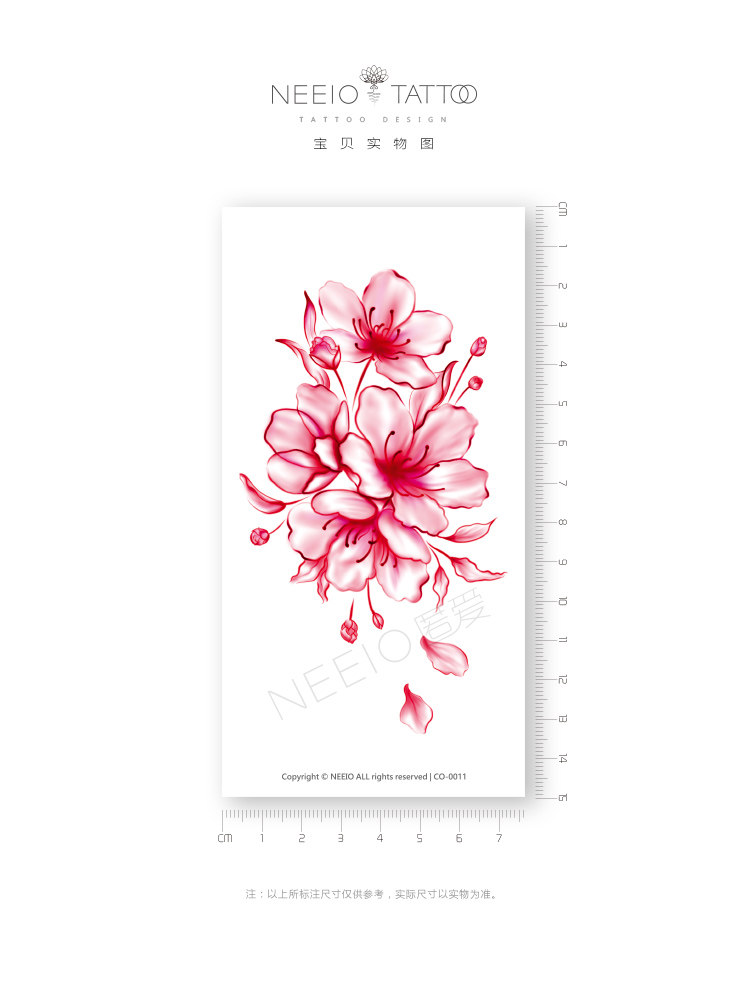 neeio tattooed with floating peach blossom Noosexy pink flower Caesarean section Cesarean Obstructed vertical scar Waterproof Female