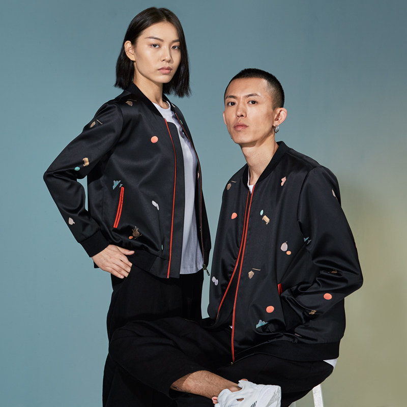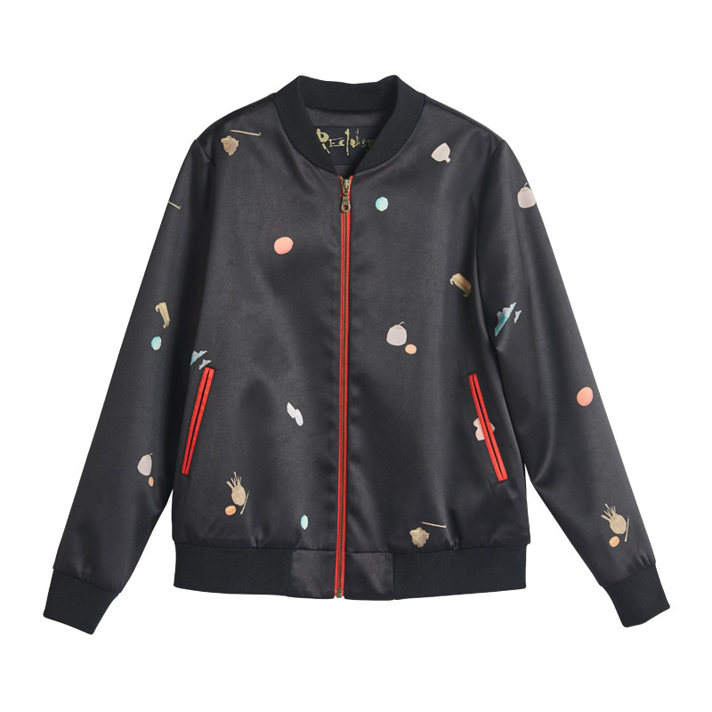 (mustard original) JGB China Wind Scatter Print Design Baseball Suit Fashion Jacket Sweater Jacket Woman