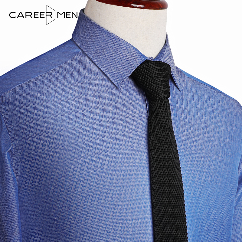 Professional door flower yarn blue shirt long sleeve men's autumn style non-ironing slim casual fashion square collar European and American style shirt