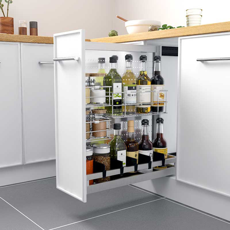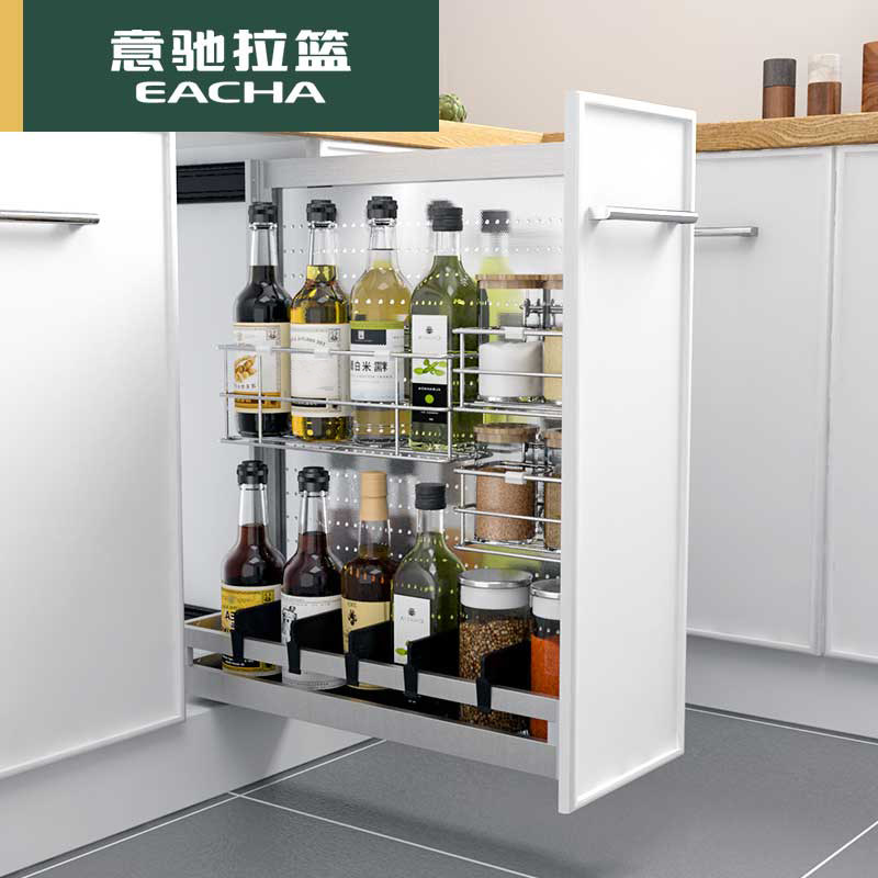 Italian Chi 304 stainless steel seasoning condiment kitchen cabinet drawer type tool side pull basket 150 200 buffer