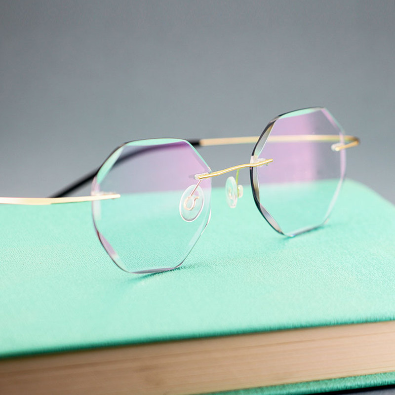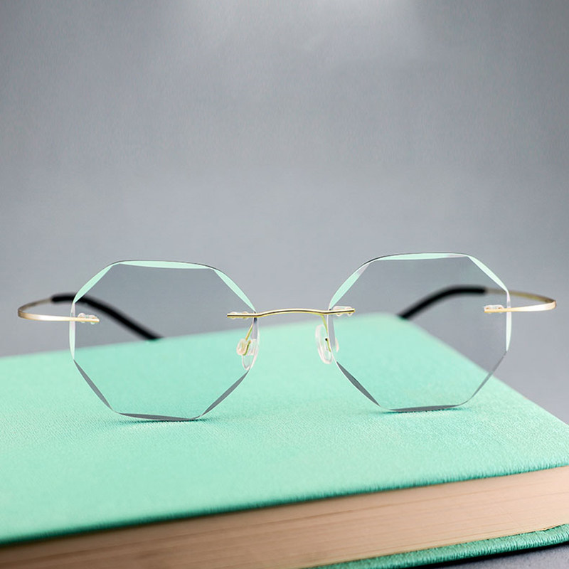 Pure titanium rimless glasses diamond cutting edge glasses myopia glasses frame glasses frame retro art ultra-light glasses for men and women