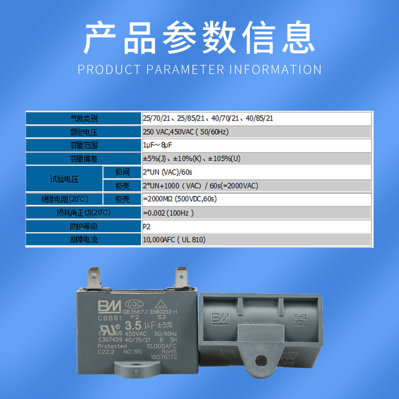 CBB61 Baiming bm air conditioner external fan fan start capacitor 2 5uf 3uf450v four pins 4 pieces