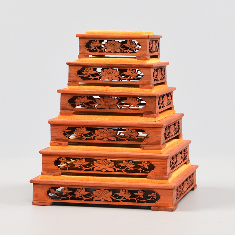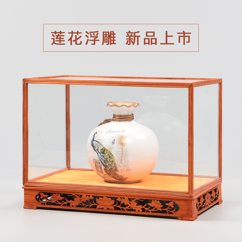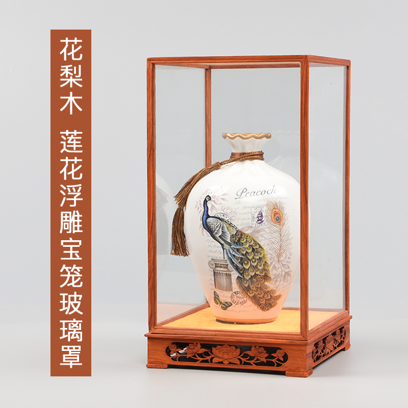 Red solid wood carved glass cover ornament Buddha statue transparent display dust cover handicraft antique Wenwan treasure cage customization