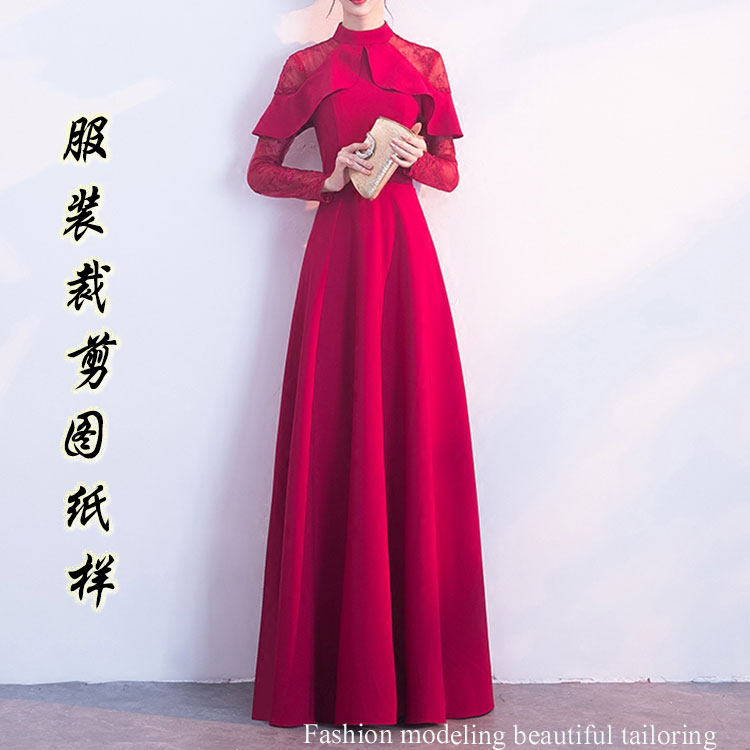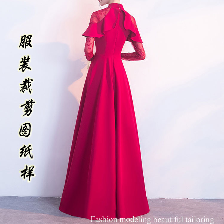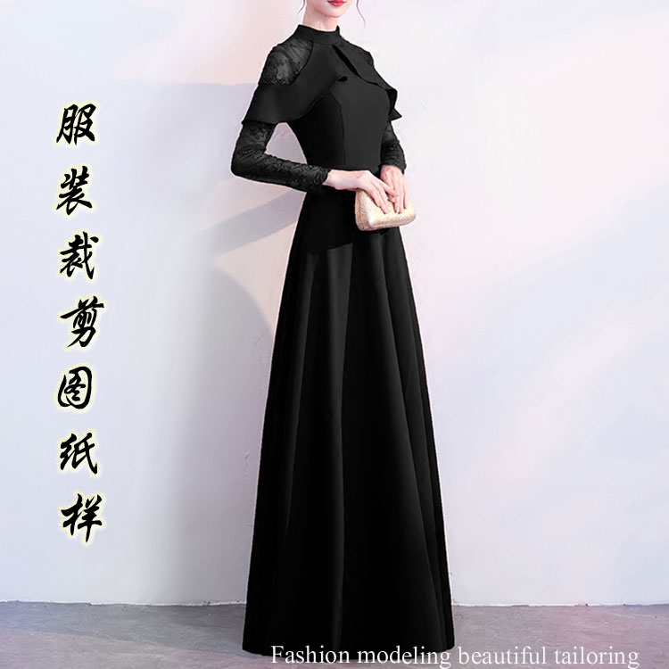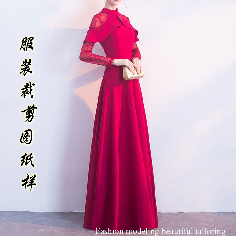Slim long-sleeved new spring and autumn summer dress lace dress pattern women's clothing model cutting drawings 9186