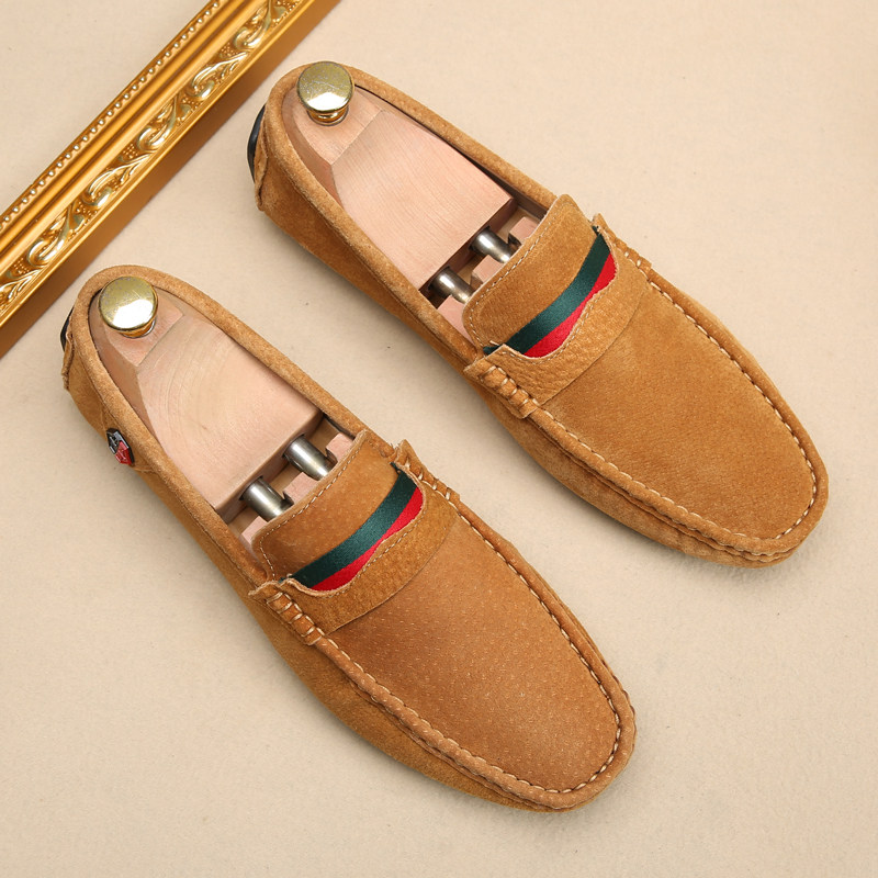 2022 spring new beanie shoes men's leather matte British casual shoes Korean version of the soft bottom fast hand red man lazy shoes