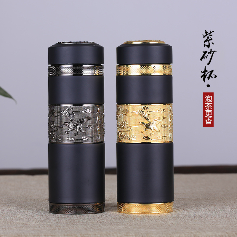 Net celebrity domineering zisha thermos mug high-end men's water cup custom lettering purple sand cup car portable tea cup