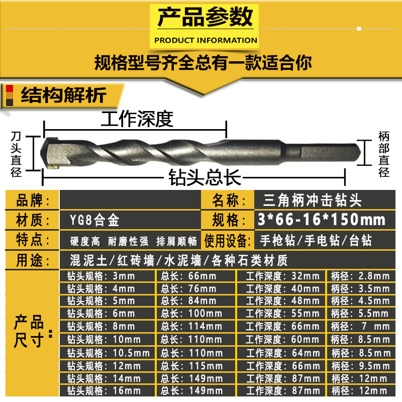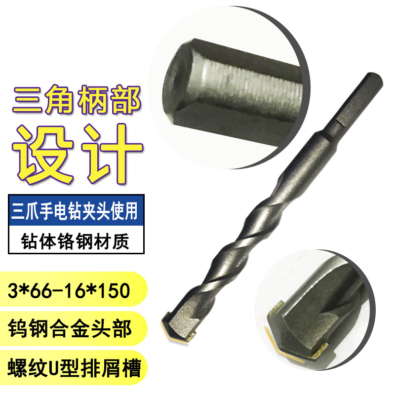 Electric drill special impact drill bit round shank triangular shank electric drill lengthened mixed earth cement wearing wall punching