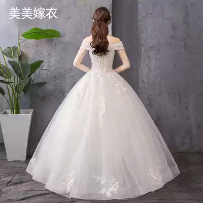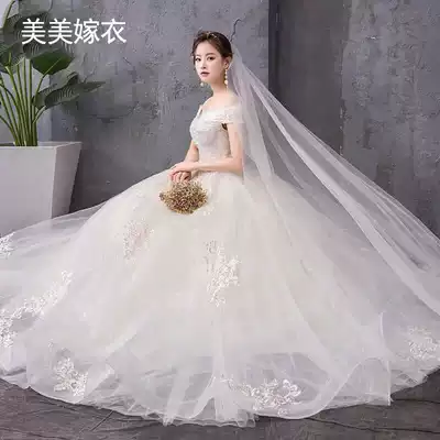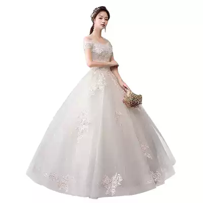 The main wedding dress 2021 bride spring new style shoulder French light simple thin court Starry Sky female