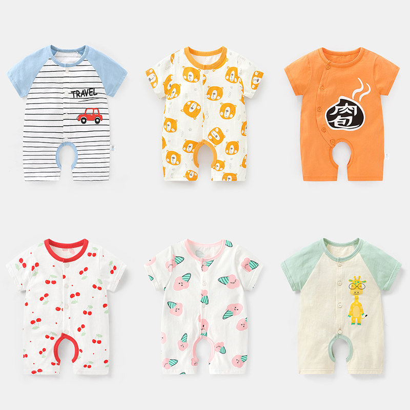 Newborn baby clothes born boy and girl baby short sleeve dress children summer cotton jacket crawl pajamas