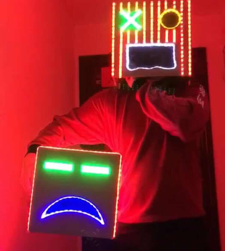 Square box headgear LED luminous safety helmet bar luminous safety helmet personality safety helmet nightclub party props panda safety helmet