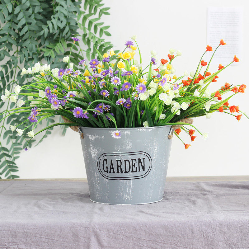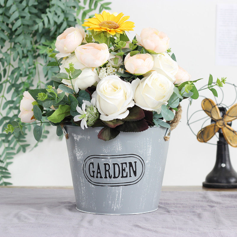 Retro-iron sheet flower pot creative gold Ge flower pot big living room Lan flower pot for old iron barrel home adornment swing piece