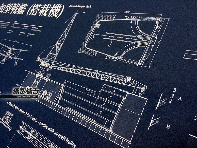 World War II Japanese battleship Yamato F1M2 carrier-based seaplane structure diagram (12) poster decoration painting
