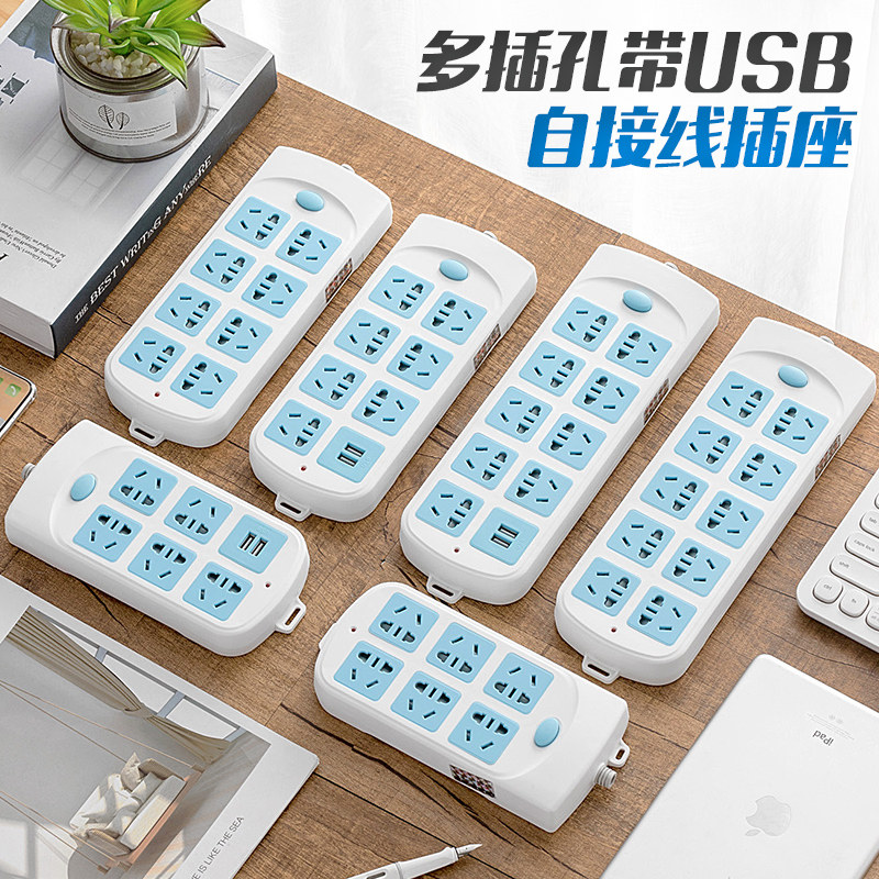 Self-wiring multifunctional wireless socket panel porous usb charging plug board without wire plugging extension cord household