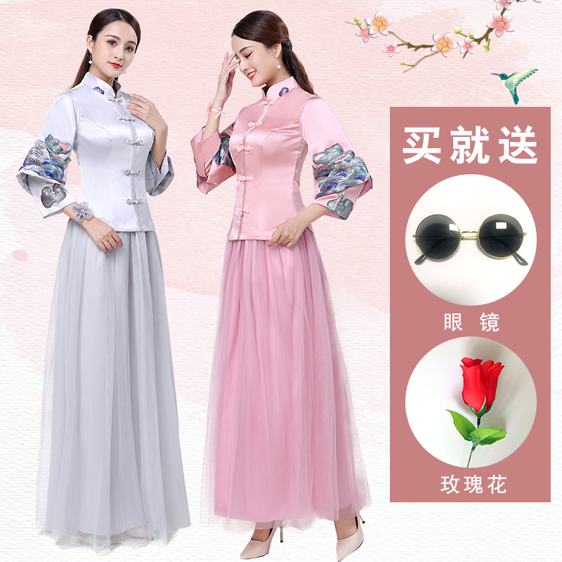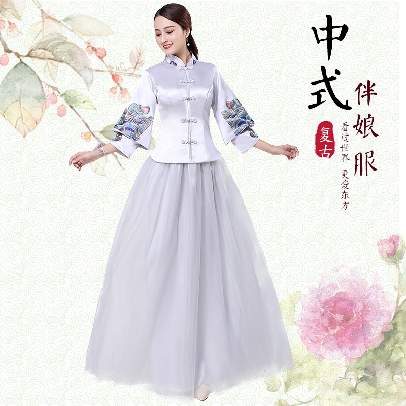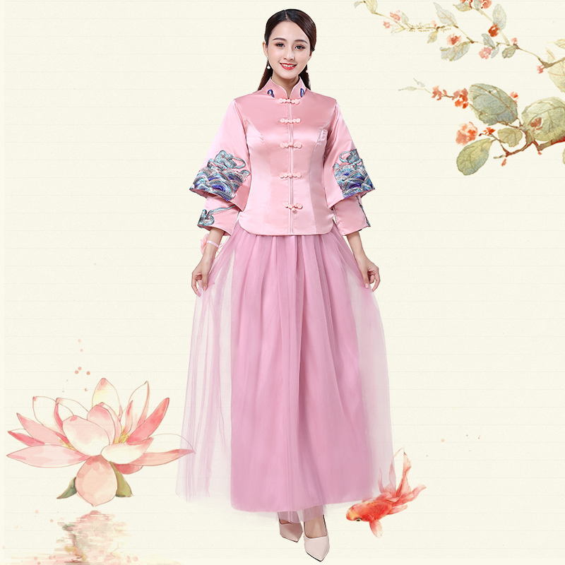 Chinese bridesmaid dress 2019 autumn and winter new stand-up collar pink bridesmaid group bride wedding long version sister dress thin woman
