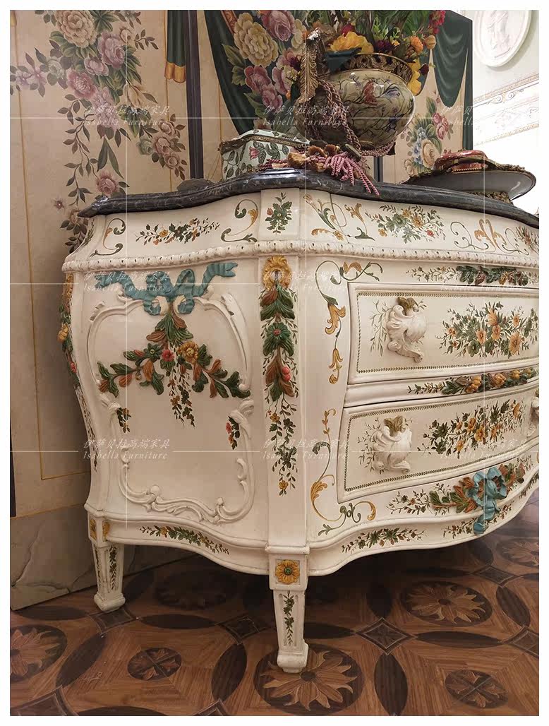 Isabella high-end luxurious solid wood retro made of old painted villa small family style door hall Xuanguan Aisle Cupboard