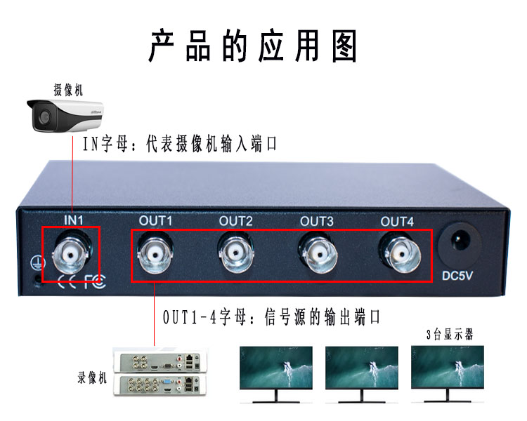 One in four out HD video splitter BNC camera signal divider 1 in 4 coaxial TVI CVIAHD