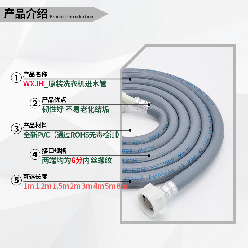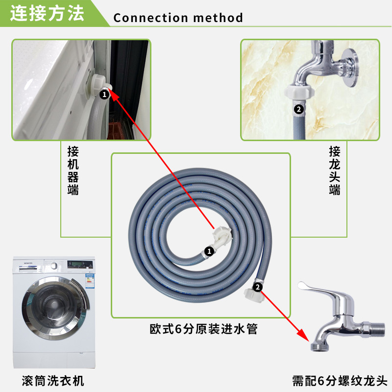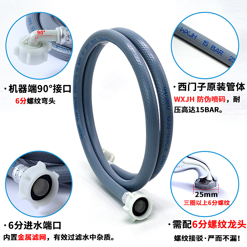 Applicable to Siemens Samsung drum washing machine inlet pipe extension pipe 6-point threaded joint original hose
