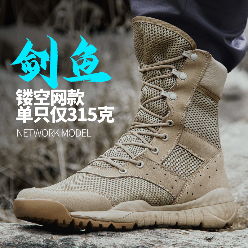 Summer desert boots ultra-light breathable combat training boots women's high-top canvas men's outdoor mesh lightweight military fans hiking shoes