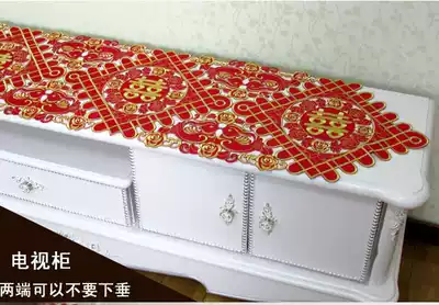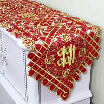 TV cabinet hollow dining table table table flag bar flag shoe cabinet cover cloth double joy fabric red wedding celebration