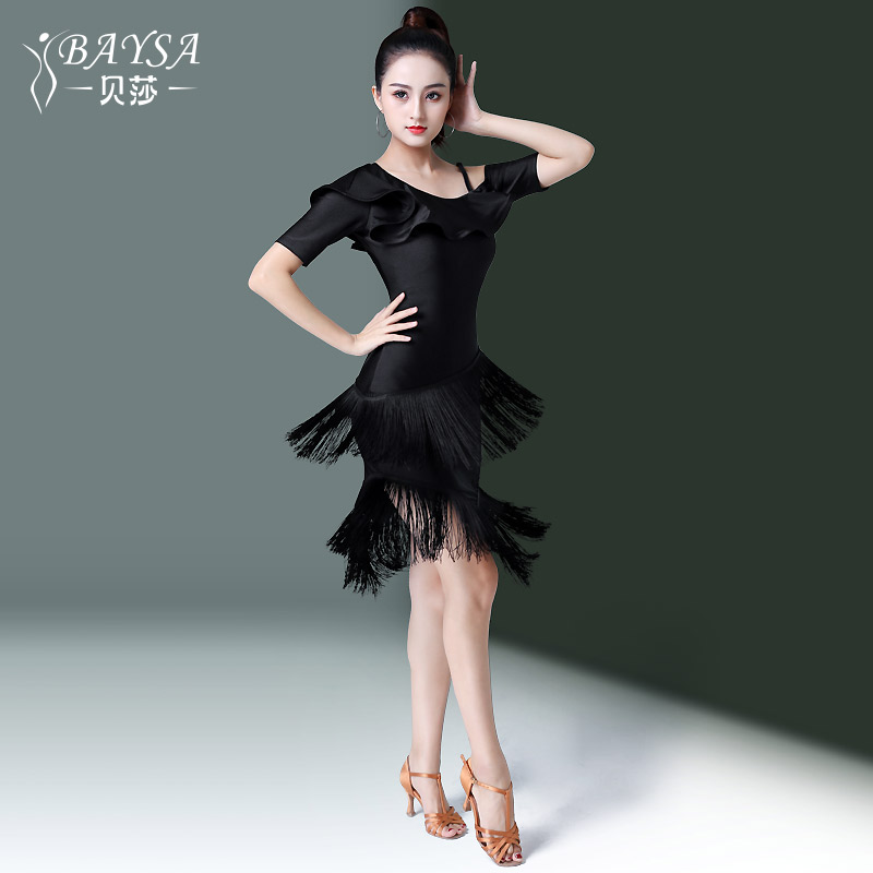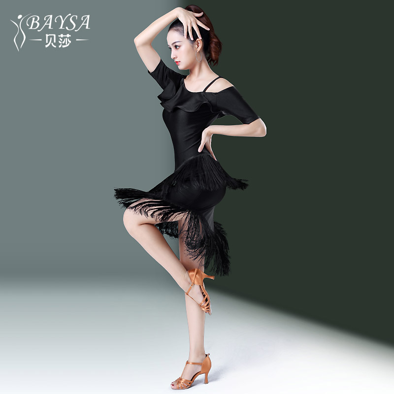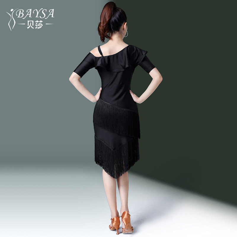 Betha 2021 Spring Summer New Latin Dance Dress Adult Female Skewed Shoulders Sexy Tandem Dress Fluor Su Precisely Acted Out-Taobao