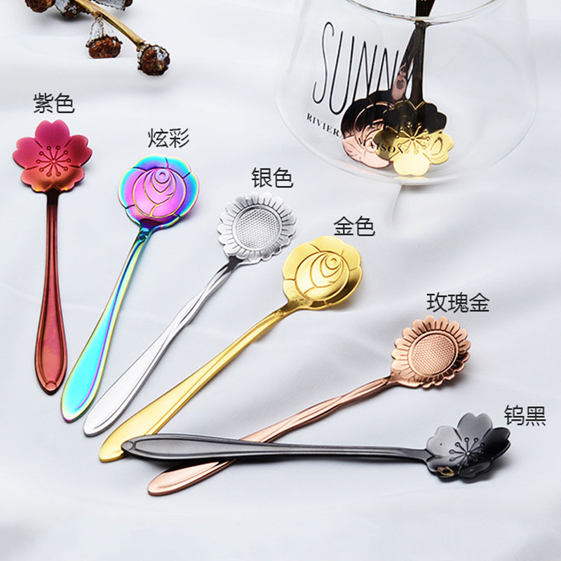 (Cherry Blossom Spoon-Golden 1) (1 blossom spoon-purple 1 branch) (cherry blossom spoon-tungsten black 1 branch) (cherry blossom spoon-rose gold 1 branch) (cherry blossom spoon-silver 1 branch)