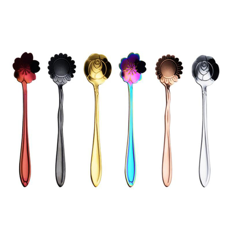 Japanese Sweet Spoon 304 Stainless Steel Cherry Blossom Spoon Silver Gilded Florid Dessert Spoon Coffee Spoon