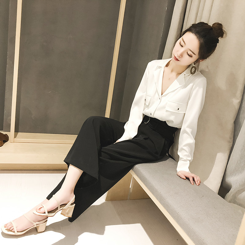 2022 New early autumn broad legs female high waist nine snow spinning and flower slim pants