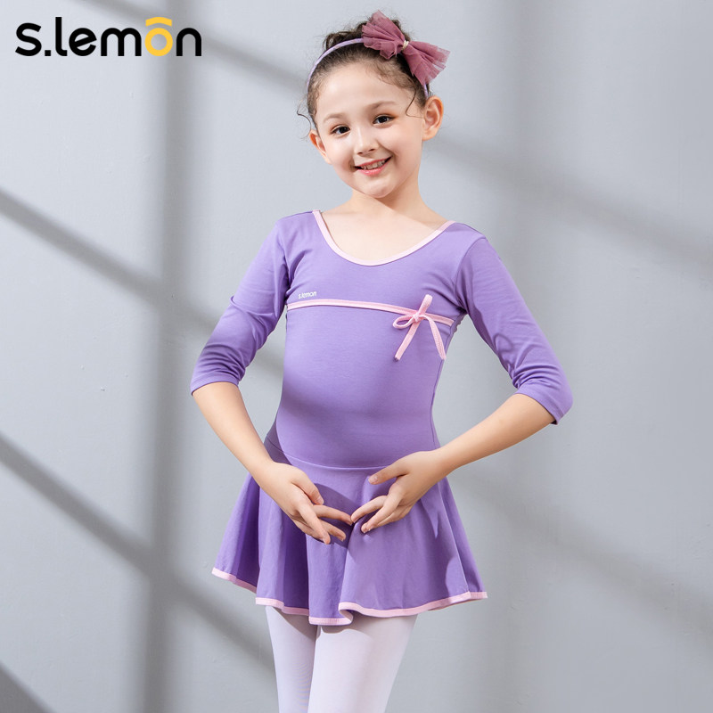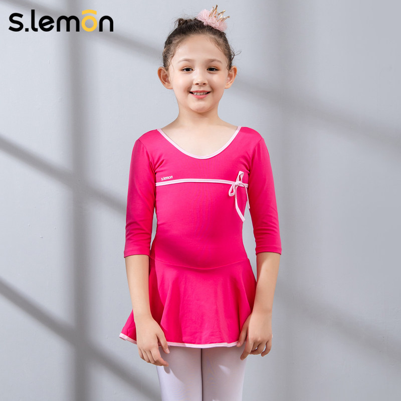 Dance costume Children's girls' one-piece latin dance practice suit seven-quarter sleeve shaped body dress girls' ballet costume performance costume