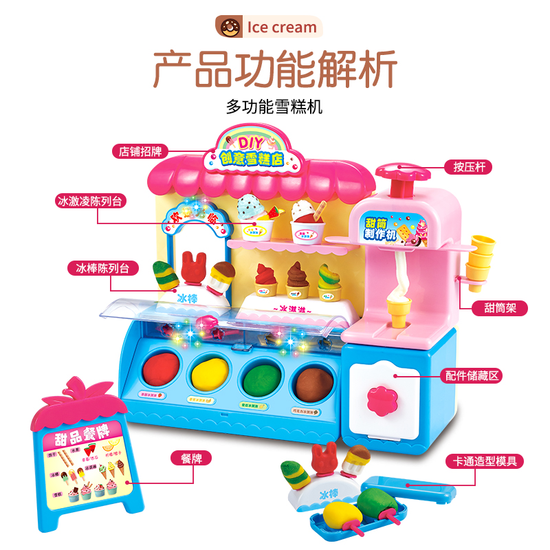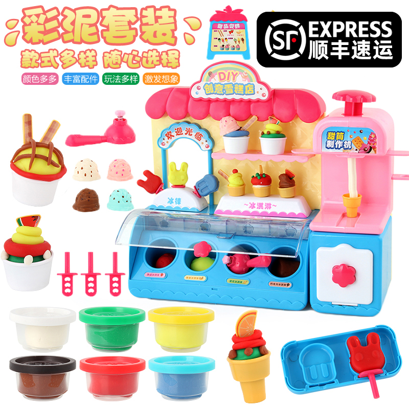 Non-toxic color clay creative DIY ice cream shop Plasticine mold tool set Children's ice cream machine toy girl