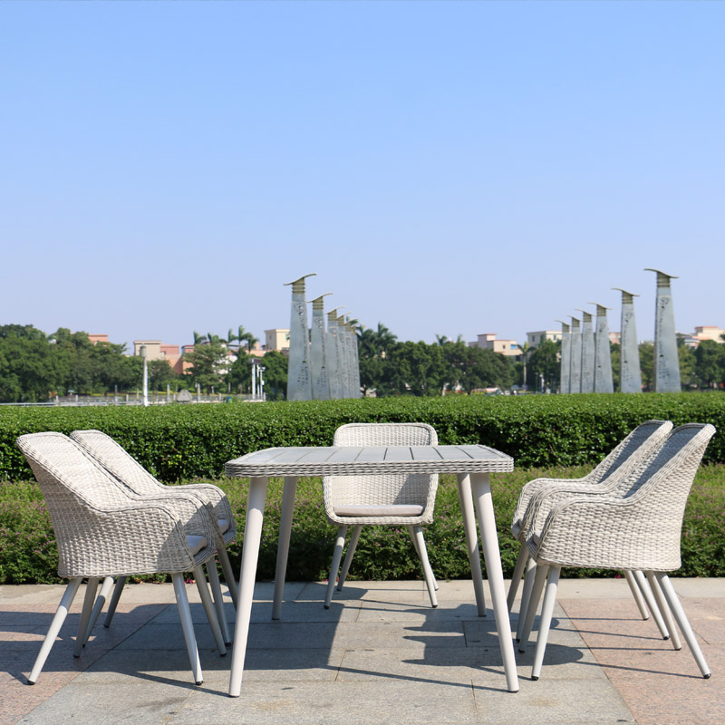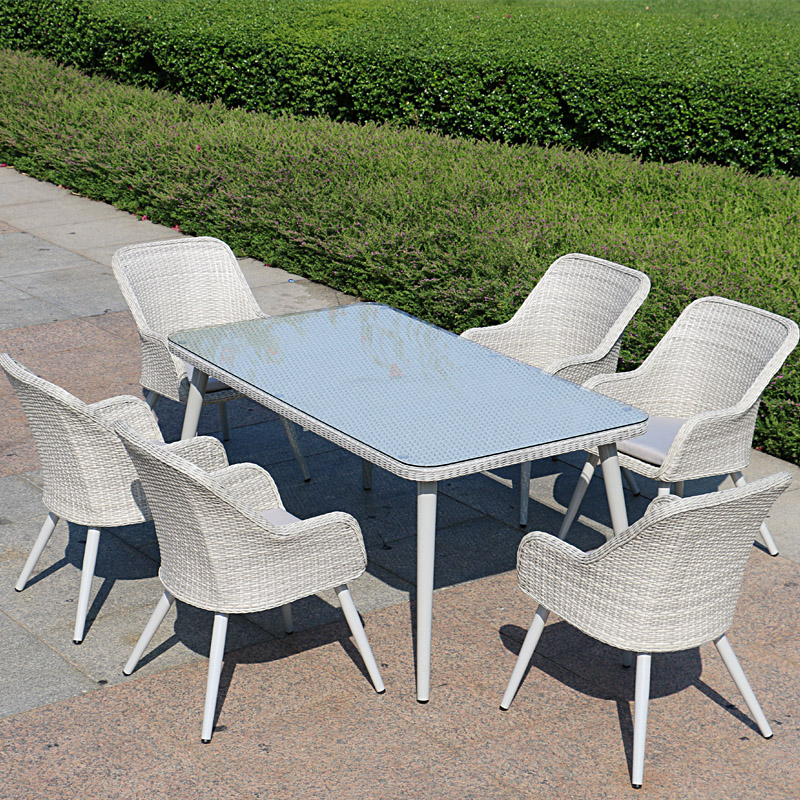 Outdoor rattan table and chairs villa leisure chair open-air balcony outdoor backrest chair coffee table combination white rainproof sunscreen