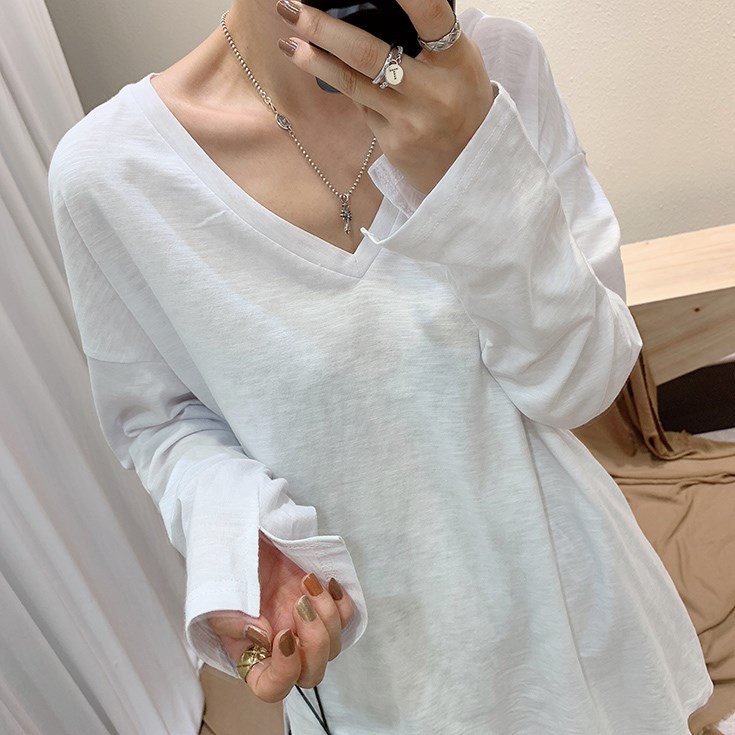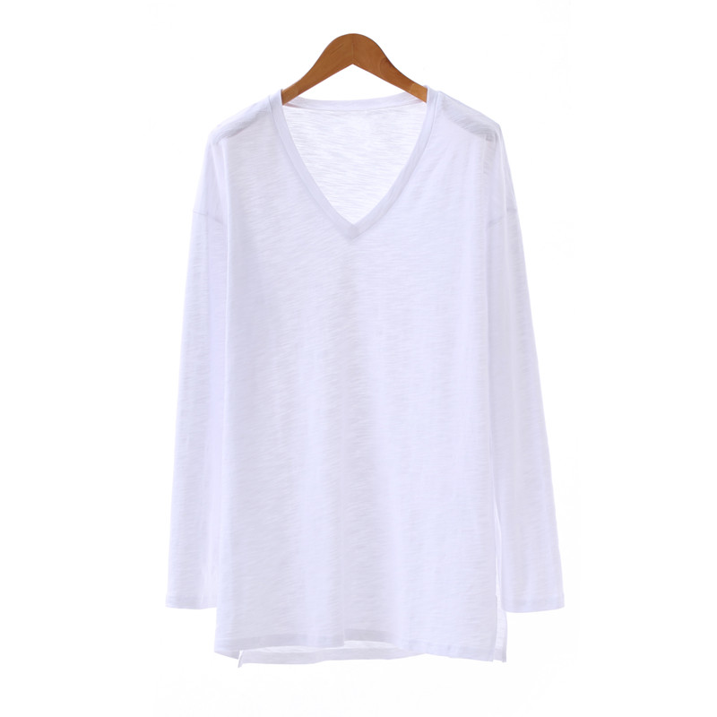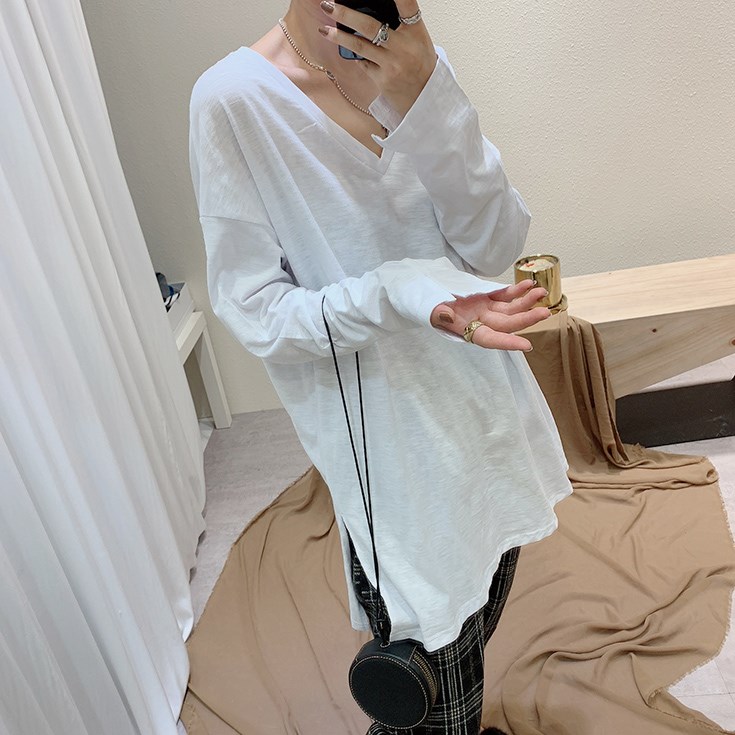 Inside hitch undershirt Bamboo knots cotton V collar 2022 Early spring new Long sleeves T-shirt Women in the middle long version of the blouses
